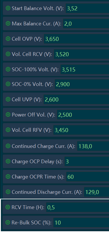 In de JK-BMS kun je deze terug vinden als de parameters: