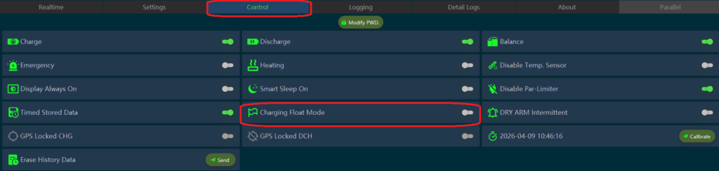 Eens in de zoveel tijd kan het belangrijk zijn om de Fload mode eens uit te laten zodat de accu wanneer deze word geladen in de absorbtion mode daar enige tijd in te laden, de cellen krijgen dan langer de tijd om te stabiliseren in de balans fase.