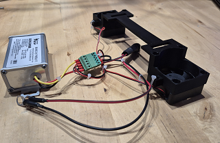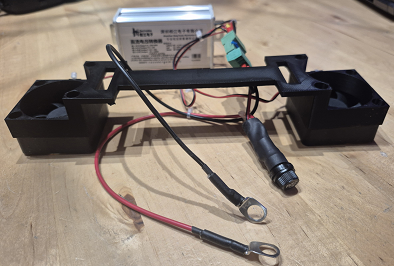 Aan de bovenzijde van mijn verticale accu behuizing zit een beugel die niet gebruikt word, ik heb met de 3D printer een beugel geprint waar twee kleine 50mm fans aan gemonteerd kan worden. Wanneer je geen 3D-Printer hebt, kun je ook een metaal plaatje gebruiken.