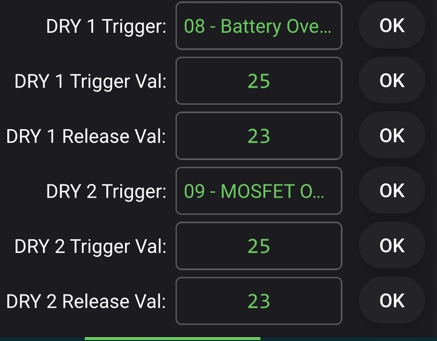 Dit zijn dan de volgende instellingen in de BMS, maar is natuurlijk naar eigen wens in te stellen.