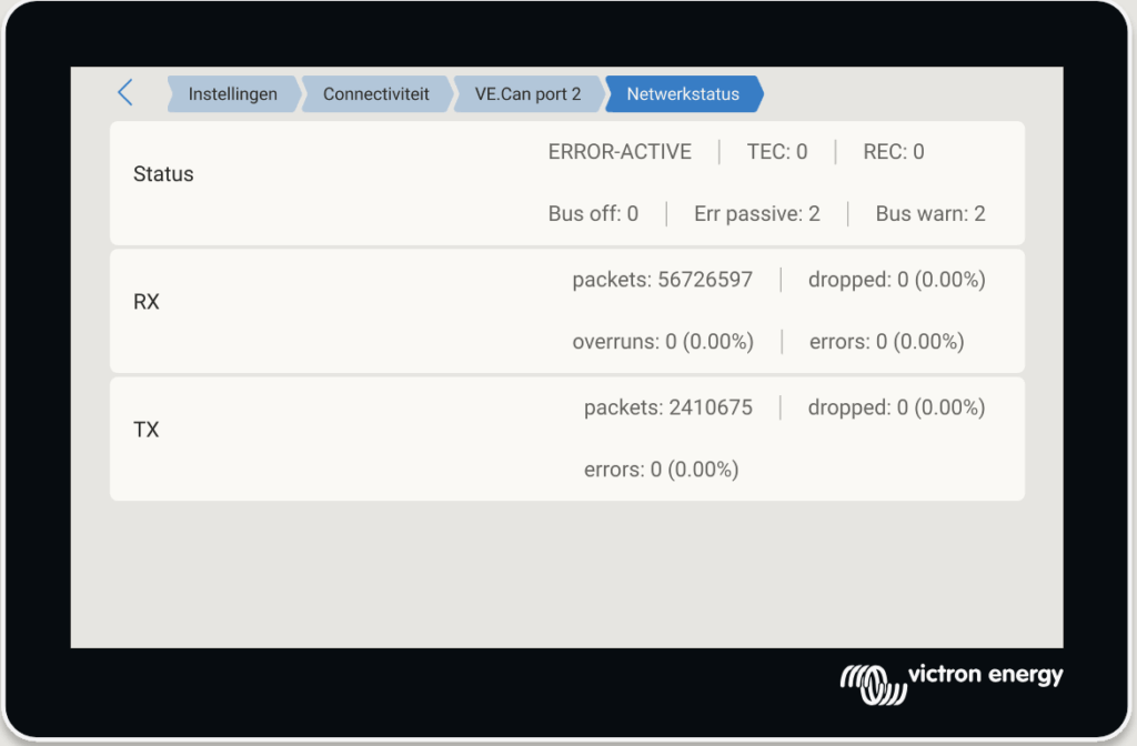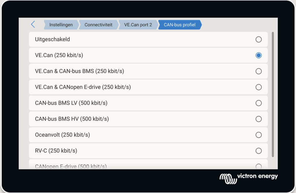 Deze zit bij mij op “VE.Can port 2”, met de volgende instelling.