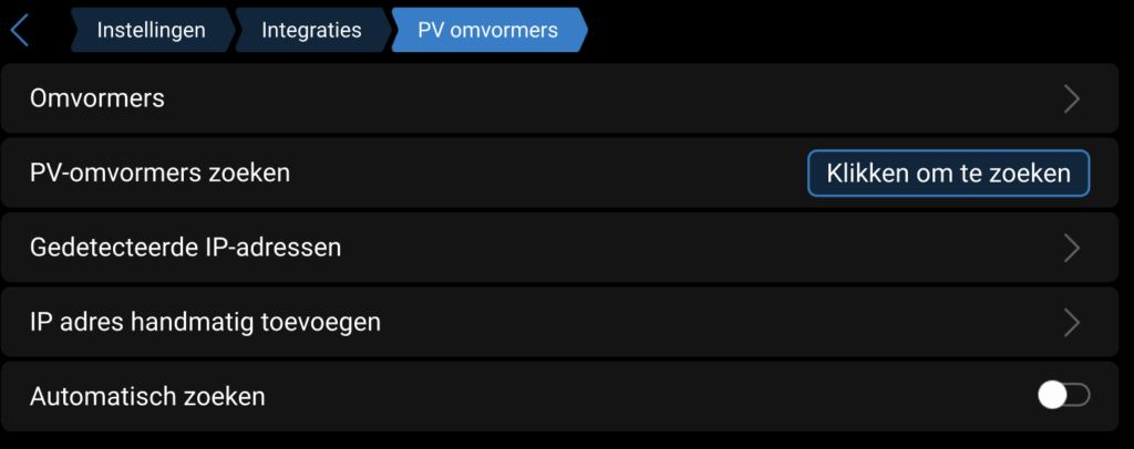 1. Ga naar “Instellingen” > “Integraties” > “PV Omvormers”, en klik op “Zoeken”.