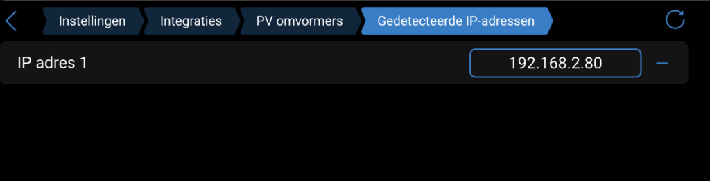 2. Ga vervolgens naar “Gedetecteerde IP-Addressen”, wanneer de omvormer(s) zijn gevonden, zullen hier de IP-Adressen vermeld worden.