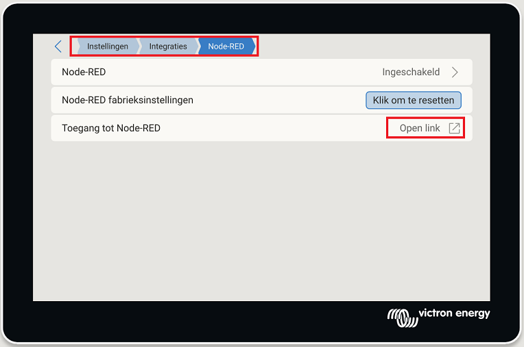 Waarbij de “Large” firmware is ingeschakeld, kan doormiddel van “Node-Red” worden aangepast.