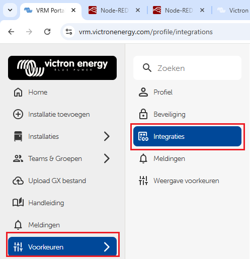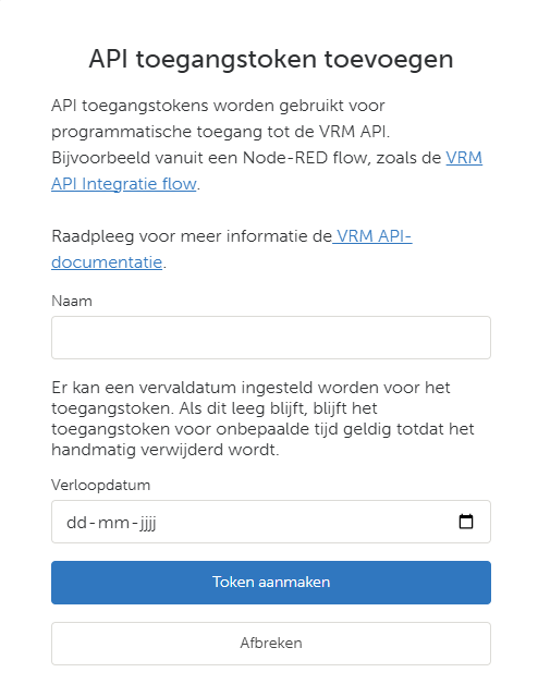 Je moet alleen nog een API token aanmaken, je doet dat bij de “Voorkeuren” en vervolgens op “Intregaties” van de VRM.